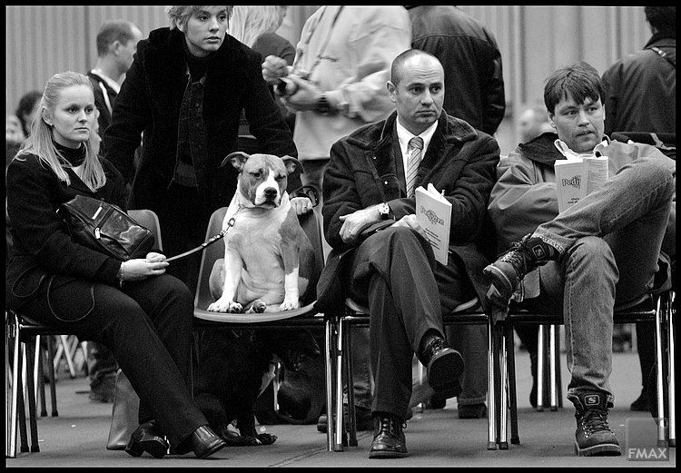 Bij een hondenshow zit een van de verliezers, samen met z'n baasjes,