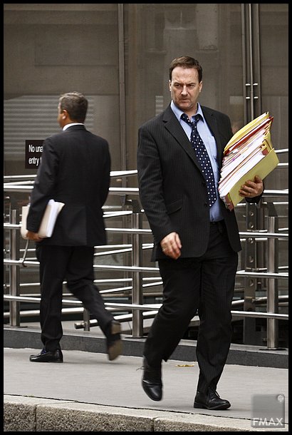 met stapels dossiers onder hun arm.