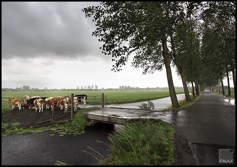 koeien schuilen bij elkaar voor het noodweer