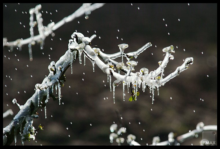 Fruitbomen worden besproeid om de bloesem te beschermen tegen de nachtvorst